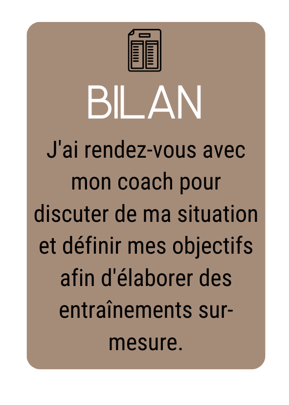 ✓ il est confectionné avec toi, en fonction de ton niveau, de tes objectifs, du matériel que tu as à disposition, du temps dont tu disposes pour l’entraînement et de tes contraintes physiques et sportives.